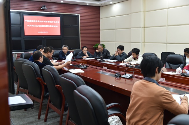 按照中共成都市教育技术装备管理中心总支党日活动计划安排,为贯彻落实市教育纪工委《关于在“两学一做”学习教育中强化廉政警示教育工作的通知》和《中共成都市教育纪工委关于开展违规收送礼金问题专项整治的通知》要求,10月10日下午,技装中心党总支开展了10月党日暨廉政警示教育活动。