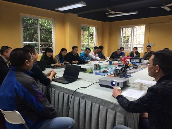 随后,乐高公司的崔万江老师,邹林东老师向大家介绍了机器人项目中的3D虚拟足球对抗赛,FLL工程挑战赛,并详细展示了FLL挑战赛的规则、场地、器材限制等,让参会老师对机器人项目有了更深入的了解。同时,根据工作布置,青羊区青少年宫今后也将作为师资培训,优秀竞赛队伍集训、选拔的基地。