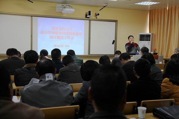 2月29日下午,青白江区教育局在青白江区实验小学组织召开“采取合作方式进行学校教育技术装备建设项目建设”工作会。区财政局、区国资局、区科经信局、区教育局机关各科室和直属单位、各中小学(含特教学校、幼儿园)、教育技术评审专家组以及中教仪公司、项目招标代理机构、中标供应商等有关人员近80人参加会议。