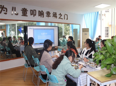 一是为幼儿创设宽松、愉快的进餐氛围,餐前半小时不组织剧烈运动。老师就餐前对饭菜进行描述和营养分析,引导幼儿进餐,不催食、包食,鼓励幼儿自主进餐;二是优化了职工就餐环境,创设了温馨和谐的就餐环境。使教师们在宽松愉悦的环境下享受着厨师们精心烹制的美味佳肴。