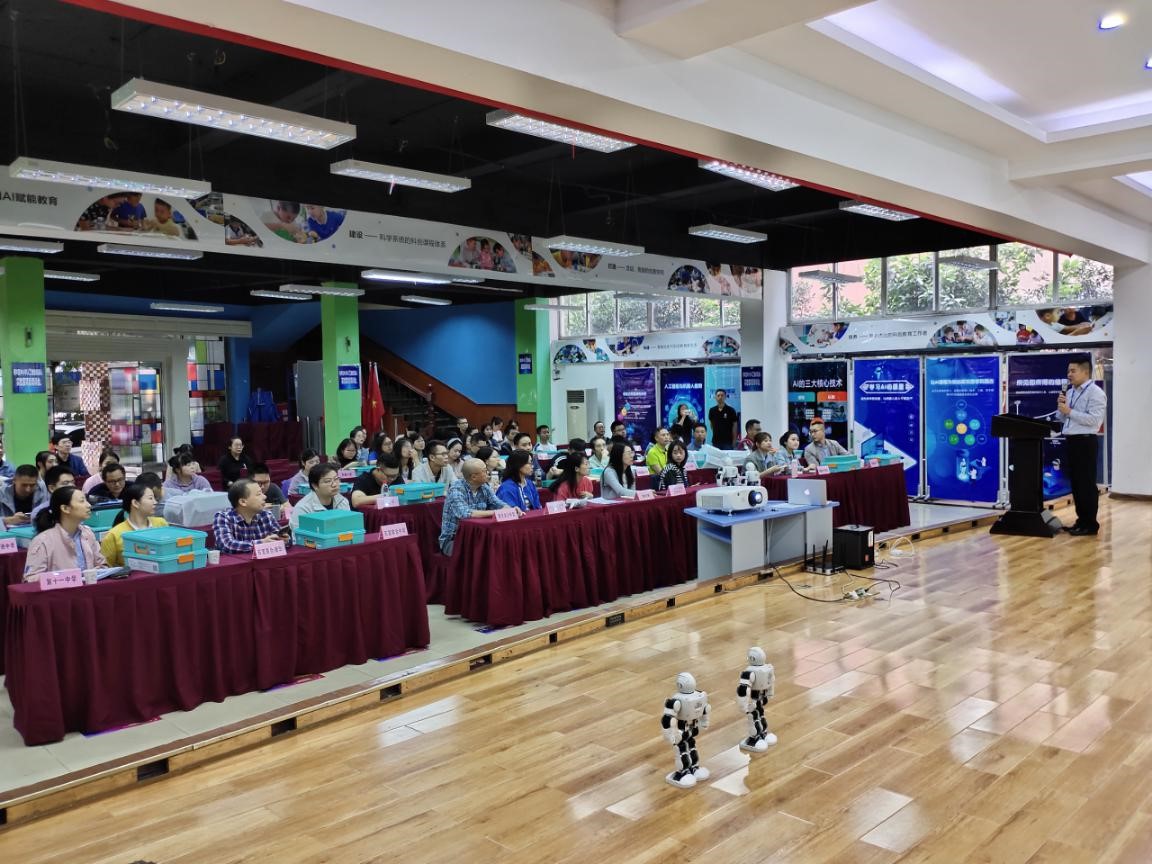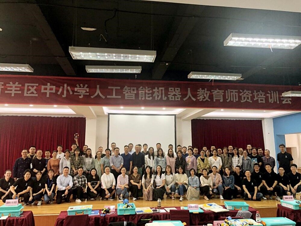 为贯彻执行国务院《新一代人工智能发展规划》精神,促进人工智能课程在中小学的普及推广,提升教师新技术应用能力,9月16—17日,青羊区教育局教育技术装备与信息管理中心召开“青羊区中小学人工智能机器人教育第二期师资培训会”。全区34所学校的69名学科骨干教师参加培训。