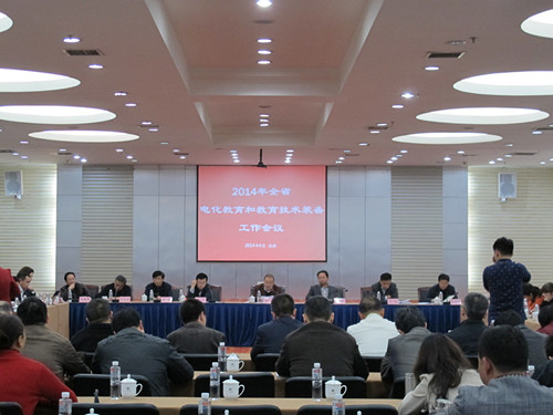 4月1日,省教育厅召开2014年全省电化教育和教育技术装备工作会议。省委教育工委委员、教育厅党组成员、副厅长何浩出席会议并讲话。省电化教育馆和教育厅教育技术装备处领导班子、全省21个市州教育局分管领导、电教技装部门负责人等120余人参会。