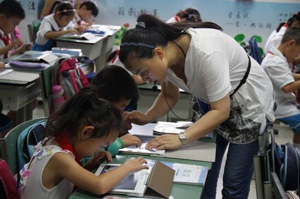 6月11日、12日、16日,都江堰市电教站会同教研室分别在北街小学、团结小学、李冰中学开展了电子书包教学研讨活动。配备电子书包的19所学校,共计37个班级的语文、数学、英语教师,电教站管理人员、教研室学科教研员共计120余人参加了研讨活动。都江堰市北街小学数学教师李晓娟、光明团结小学英语教师兰艺、李冰中学语文教师任茜分别利用电子书包互动教学系统展示了一节公开课。课后,都江堰市电教站和教研室组织教师们分别开展了研讨活动。