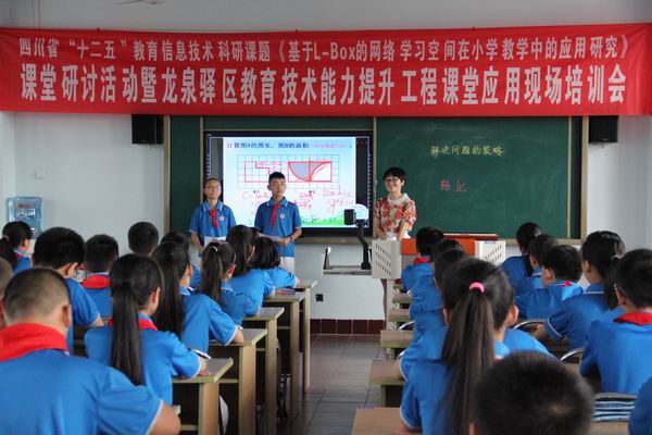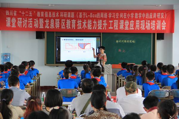 6月4日上午,龙泉驿区在龙泉一小召开教育技术能力提升工程课堂应用及课题研讨现场培训会。本次现场培训会以四川省“十二五”教育信息技术科研课题《基于L-Box的网络学习空间在小学教学中的应用研究》课题研讨活动为载体,以“扎实课题研究、提升应用能力、促进深度融合”为主题,以课堂展示、课堂评价、经验分享、主题汇报、专家引领五大版块为基本内容对全区中小学分管教学副校长、教导主任、信息化主管共计100余人进行了现场观摩和培训。