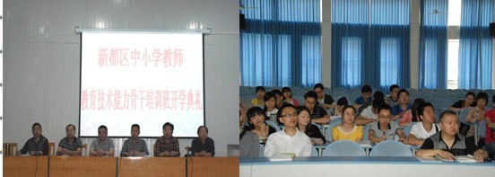 4月19日,新都区中小学教育技术能力骨干培训班开学典礼在成都市现代制造职业技术学校举行。区教育局副局长充翁郎加、人事科科长陈文昌,区研培中心副主任余戈、姚国章、郑良忠,川师大远程培训中心主任黄松出席开学典礼。