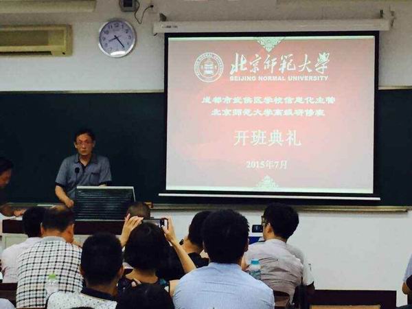 7月19-25日,武侯区教育局组织区属中小学信息主管和中心组教师一行60人到北京师范大学教师继续教育学院进行为期一周的高级研修培训。本次培训结合学校信息主管岗位的特点,以观念更新、技术最新、实践创新为主线,科学合理设置课程,为全区信息主管和中心组教师进行系统性研修培训。本次研修为下一步武侯教育信息化工作整体推进提供了人力资源保障。