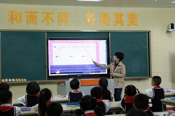 第一节课是石笋街小学一年级赵婷婷老师上的《小小养殖场》。孩子们良好的课堂学习习惯,流畅且自信的小组汇报展示和授课教师简练、机智的课堂点评给观课教师留下了深刻印象。赵老师通过巧妙使用即时反馈系统,调动起全体学生练习兴趣,了解到每个学生对数学知识的掌握情况,实现了一对一数字化学习环境有效促进每个学生的数学知识内化、思维提升的目标,是一节很有价值的展示课。
