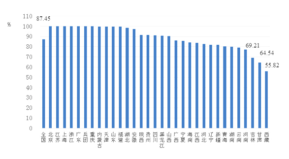 图2  2016年全国配备多媒体教学设备的中小学比例情况