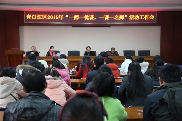3月6日下午,青白江区教育局组织召开了2015年“一师一优课、一课一名师”活动工作会。全区学校骨干教师100余人参加会议。教育局党组成员、区研培中心主任王晓斌同志到会指导工作。
