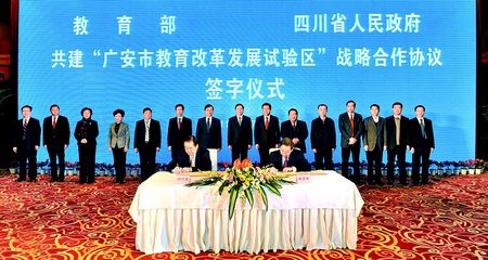 根据合作协议,部省双方将共建广安市教育改革发展试验区,以加快学前教育发展步伐、促进义务教育均衡发展、高中阶段教育协调发展和高等教育快速发展为重点,坚持改革创新,推进广安市各级各类教育科学发展。部省双方将进一步深化四川大学和电子科技大学管理体制和运行机制的改革与创新,使学校人才培养质量、科学研究水平、自主创新能力、社会服务能力以及国际竞争能力显著提高,在造就学术领军人物和集聚创新团队、培养拔尖创新人才、产生国际领先的科技成果、创新管理体制机制等方面取得新的突破。