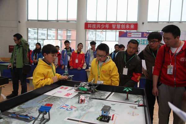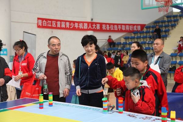 29日上午,举行大赛开幕式。青白江区教育局局党组成员、副局长刘忠余致辞,局党组成员、区教育研究培训中心主任王晓斌宣布比赛开始。比赛设初段机械宠物、中段智能搬运和高段FLL工程挑战赛三个项目,经过两天激烈比赛,最后有7支队伍获得一等奖、11支队伍获得二等奖、14支队伍获得三等奖。比赛期间,教育局党组书记、局长何丽同志亲临现场观看比赛。