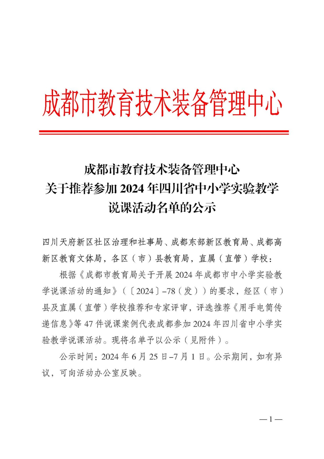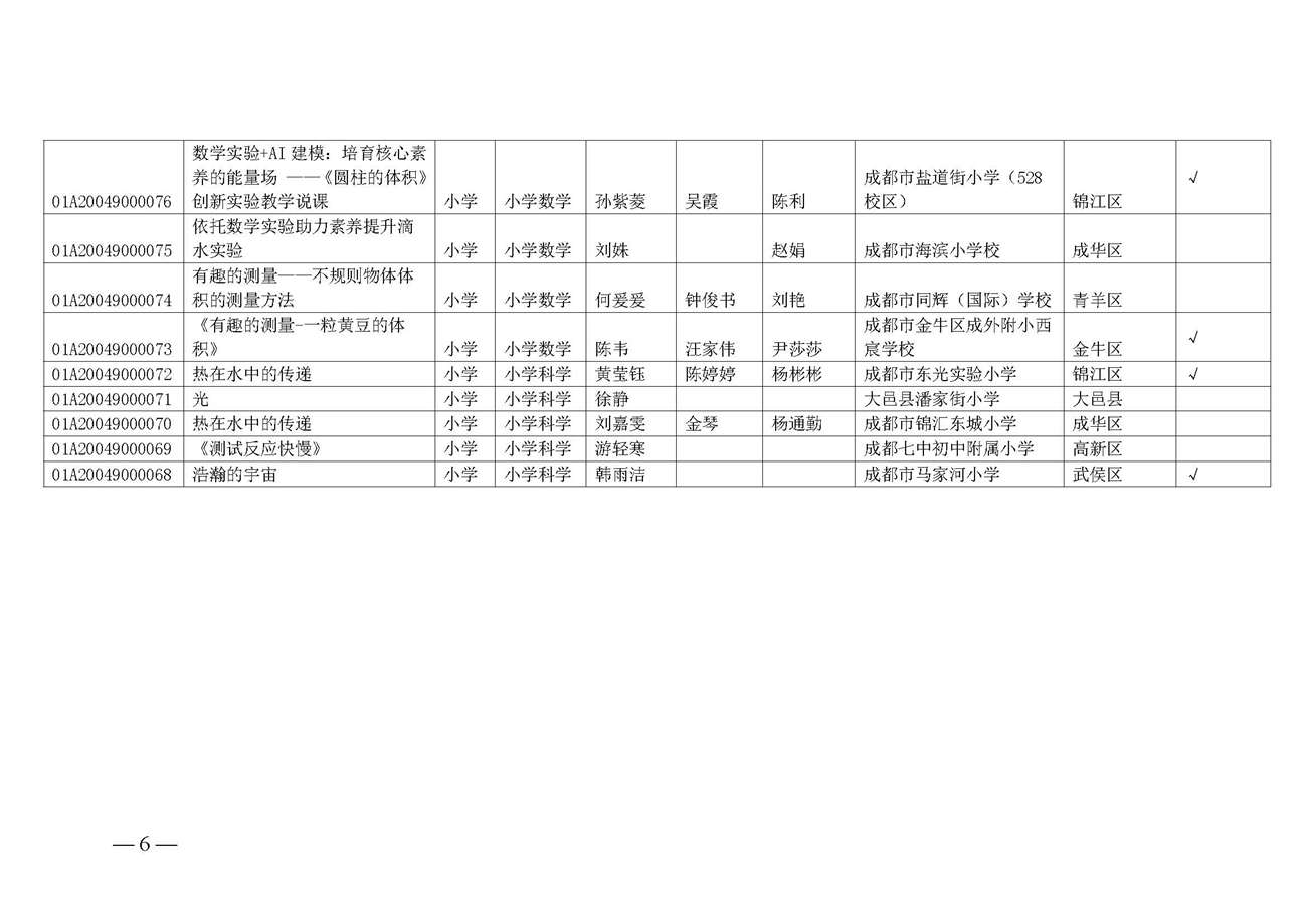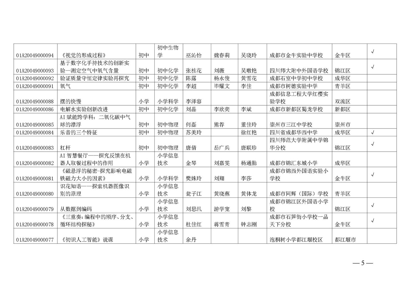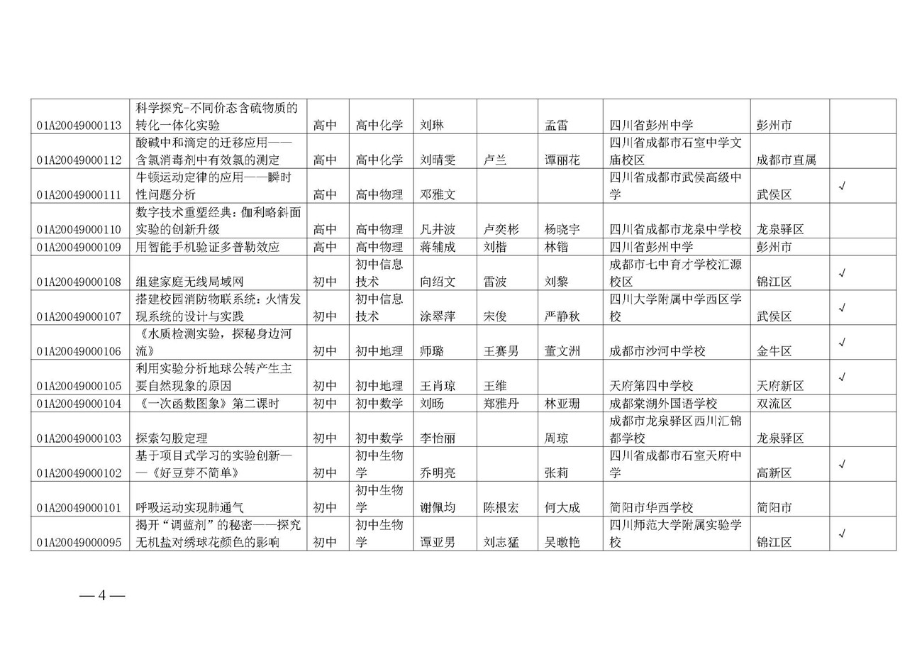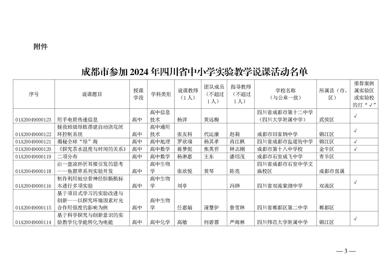 成都市教育技术装备管理中心关于推荐参加2024年四川省中小学实验教学说课活动名单的公示