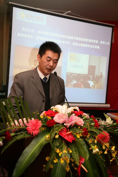 会上,区政府副区长白涛对所有到会领导和代表致欢迎词,对他们的到来表示最热烈的欢迎;四川省教育厅师范处正处级调研员、四川省中小学教师继续教育办公室专职副主任曹芳贵做了重要讲话。曹芳贵主任在讲话中强调了加强全省教师教育技术能力建设工作的重要性,提出了“总体规划、分步实施、学用结合、注重实效”的实施原则,并就工作中应注意的几个问题做了要求;随后,四川省教育考试院非学历考试处伍江老师就关于教师教育技术能力建设考试方面的工作做了详细的讲解;四川省中小学教师网络联盟管理中心、四川省中小学教师继续教育四川师范大学中心李志全主任围绕“已培训为核心,以考试为促进,全力推进教育技术能力建设”做了专题发言。四川省中小学教师教育技术能力建设项目办公室主任、四川省电教馆馆长王及文做了重要讲话。他首先肯定了青白江区的教师教育技术能力建设工作走在了全省的前列,这次会议也是一次现场会;同时,提出了实施教师教育技术能力建设工作的必要性和重要性,对下一步工作的开展作了要求,要求各单位进一步提高认识,加快工作步伐;在教育部、省教育厅及项目办的领导下,做好教师教育技术能力建设工作。