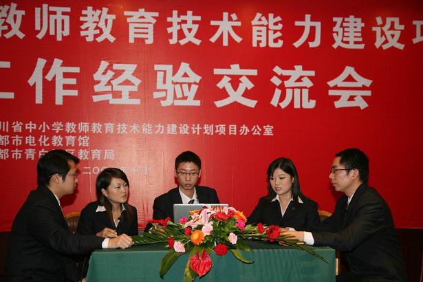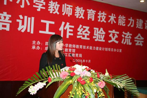 会议还进行了经验交流,先后听取了成都市青白江区教育局、青白江区学校代表——祥福中学、广安市电教馆、绵阳市电教馆、泸州市泸县电教馆的经验介绍。青白江区教师代表—青白江中学胡荣平、祥福小学教师卢云花以及大弯小学教师在会上进行了经验互动交流,汇报了教师教育技术能力建设的体会。