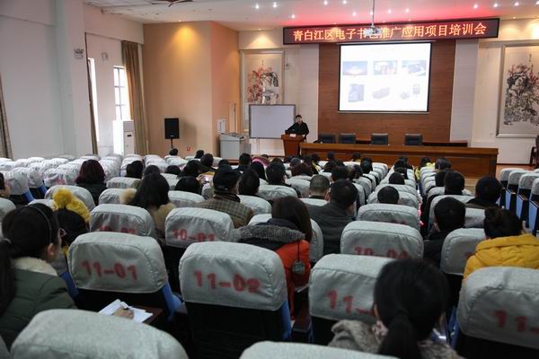 2014年12月9—10日,青白江区召开电子书包试点项目推进会。华东师范大学祝智庭教授、华东师范大学教育信息化系统工程研究中心钱冬明常务副主任、苏小兵副主任作专题讲座。区教育局何丽局长、郭万俊副局长、局党组成员王晓斌,各学校分管校长、教导主任及骨干学科教师、学校电子书包实验班教师及区研培中心相关教研员,共计130余人参加了本次会议。