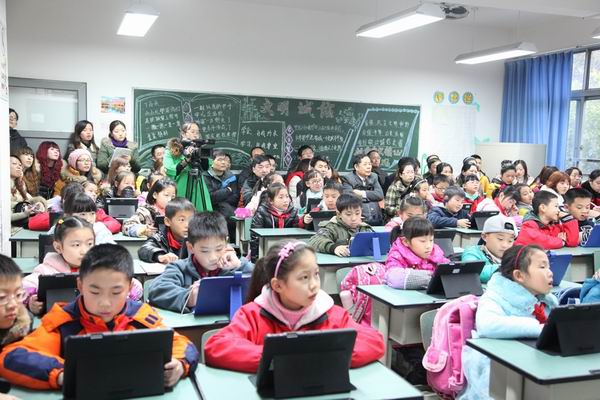 本次推进会,旨在让我区教师进一步转变教学观念,将以“教”为主变为以“学”为主,提高教师在电子书包项目的研究能力,最终将电子书包试点课变成常态课,对推进我区电子书包试点项目工作具有重要意义。