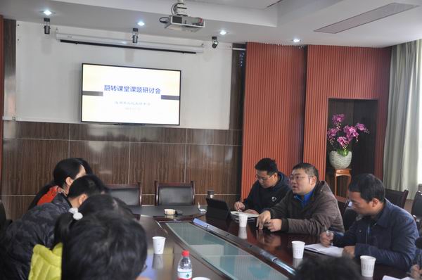 课后,课题研究组进行了深入交流。金牛区教育研究培训中心易立铁主任对此次会议目的和要求作了介绍。在教培中心信息部钟志刚老师的主持下,大家对今天课上看到的和平时尝试翻转课堂中遇到的问题进行热烈讨论。本次活动为下一步开展翻转课堂的研究提供了更加明确的方向。