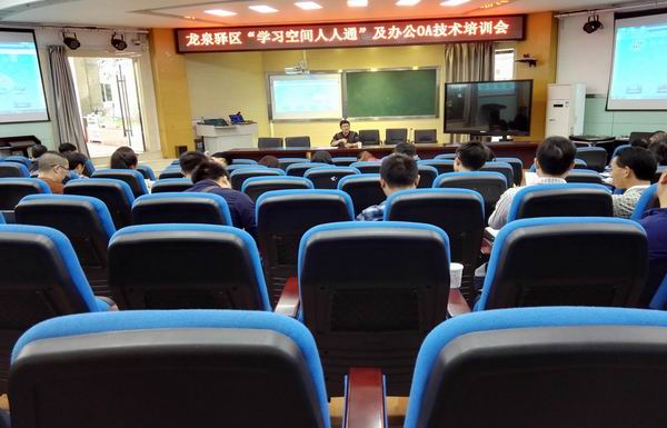 为更好的开展相关应用工作,2015年9月17日,龙泉驿区教育技术装备管理中心组织全区中小学信息化主管和信息工作人员在实验小学参加了龙泉驿区“网络学习空间人人通”及办公OA平台技术培训会。对平台各模块功能的应用进行逐一介绍和操作演示。为下一步该平台的应用和推广打下了基础。