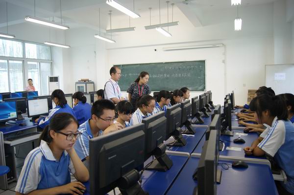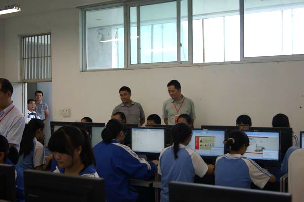 温江电教馆副馆长李伟、温江中学副校长张学延陪同巡查。