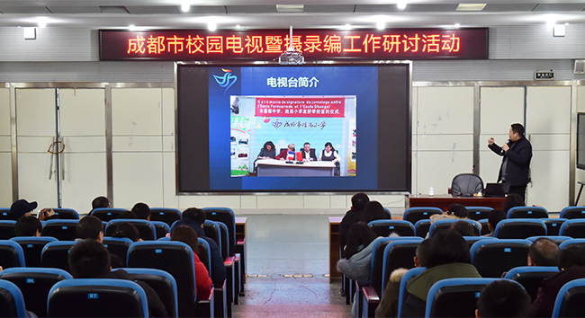 为培育我市中小学校园影视高质量发展,进一步提高校园电视台工作人员的技术水平,强化学校摄录编队伍建设,2018年12月14日,由成都市教育技术装备管理中心主办,成都市锦江区教育局电化教育馆承办的“成都市校园电视暨摄录编工作组研讨会”在锦江区天涯石小学召开。来自各区(市)县电教馆(站)长、2018年四川省中小学校园电视活动部分获奖学校、摄录编工作组成员及校园电视工作人员共100余名教师参加了此次会议。