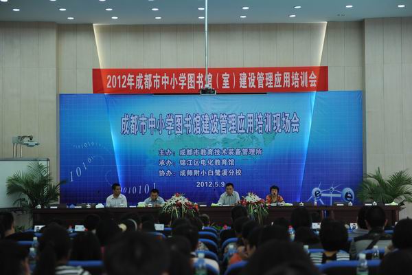 为进一步推动全市中小学图书馆(室)建设管理应用工作,提升图书管理人员素质,开展阅读指导教学活动,促进图书装备效益发挥。由成都市教育技术装备管理所主办,锦江区电化教育馆承办、成师附小白鹭溪分校协办的“2012年成都市中小学图书馆(室)建设管理应用培训会”于5月9日在锦江区成师附小白鹭溪分校顺利召开,来自各区(市)县教仪电教站(馆)长、教仪站分管图书工作同志示范校图书管理人员、市直属学校分管图书馆工作分管领导及图书管理人员、锦江区各校分管领导及图书管理人员几百人参加了此次会议。