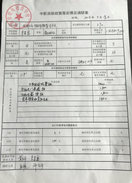 为进一步规范学生资助管理,确保国家的惠民政策不折不扣落到实处,2018年9月,成都市教育资助中心中职资助项目组成员对成都市特殊教育学校、成都市工业职业技术学校、成都农业科技职业学院、成都市体育运动学校、成都市文化艺术学校、成都工贸职业技术学院成都铁路工程学校六所直属中职学校开展了学生资助专项检查。成都市教育资助中心设置了专门的检查表,查看了学生学籍网、资助网、考勤系统,随机抽查了中职免学费档案资料,到班点名核实受助对象,并随机抽取部分学生进行问卷调查。