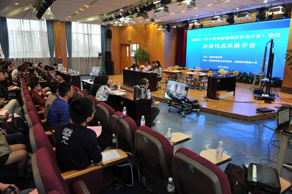 10月22日,由成都市教育局举办的《中小学创新课程研究与开发》课题阶段性成果展示会在成都师范银都小学紫薇校区银都师范小学紫薇校区(直播主会场)和全市20个区(市)县教育局视频会议室(接收分会场)举行。全市教育系统共872个学校1260余人参加会议。