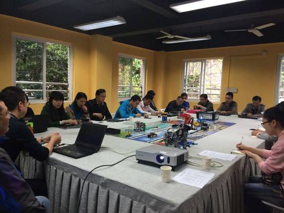 随后,乐高公司的崔万江老师,邹林东老师向大家介绍了机器人项目中的3D虚拟足球对抗赛,FLL工程挑战赛,并详细展示了FLL挑战赛的规则、场地、器材限制等,让参会老师对机器人项目有了更深入的了解。同时,根据工作布置,青羊区青少年宫今后也将作为师资培训,优秀竞赛队伍集训、选拔的基地。