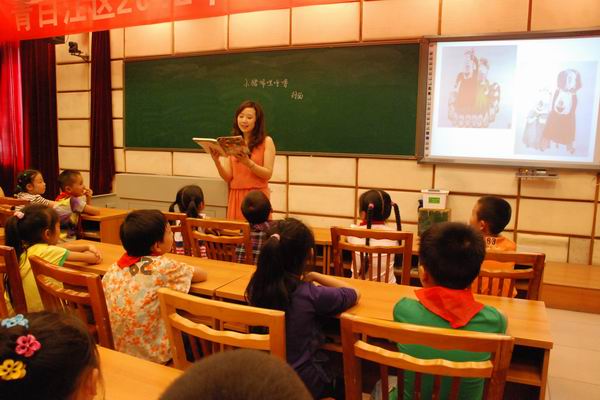 3月11日,青白江区祥福小学喻培洁老师上阅读指导观摩课,部分学校图书管理员参加(1)