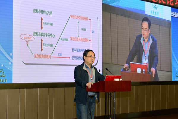 在“信息化建设分论坛”上,张英武副局长作了题为《夯实基础 历练内功 创优网络应用环境 引领学习空间人人通》的主题报告,从“建、管、用”三个方面介绍了我区教育网络方面的一些具体思路和做法,得到了与会专家及同行的一致好评。