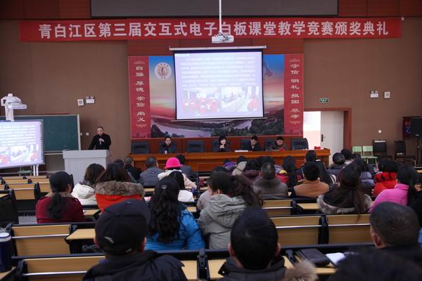 1月2日,青白江区第三届交互式电子白板赛课颁奖典礼在川化中学举行。区教育局党组书记、局长何丽等领导以及各学校校长、教导主任、骨干教师和交互式电子白板赛课获奖教师,共计120余人参加活动。