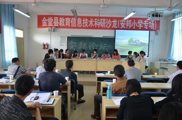 4月27日,2012年金堂县教育信息技术科研沙龙第一次活动在安邦小学举行,活动由金堂县技装中心牵头,安邦小学承办。县教育局督导员王隆志、技装中心主任陈家敏及相关人员、沙龙各成员单位校长及主研人员共计30余人参加了本次活动。