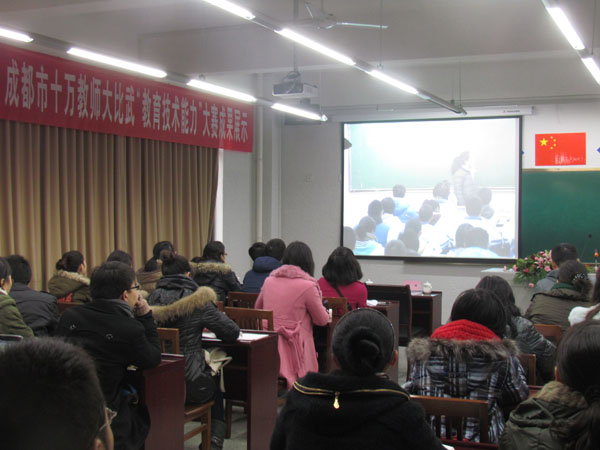 2011年12月14日,成都市十万教师大比武“教育技术能力”成果展示活动在川大附中远程直播互动教室举行。成都市教育教研和教育技术领域相关专家、五城区及高新区参加决赛的教师共计九十余人参加了现场展示活动,各区县教研室组织相关教师远程观看了展示活动的网络直播。