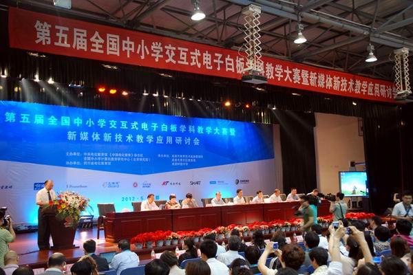 5月27日—29日,由中国教育学会中小学信息技术教育专业委员会、中央电化教育馆《中国电化教育》杂志社主办,成都市教育技术装备管理所、青羊区教育局、成都树德中学承办的第五届全国中小学交互式电子白板学科教学大赛暨新媒体新技术教学应用研讨会在我市隆重举行。