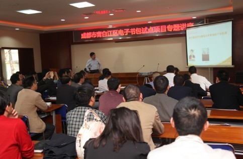 本次调研走访了大弯小学和实验小学两个试点学校,和区教育局相关科室负责人进行了座谈,初步了解青白江区教育信息化建设、应用的现状,以及试点项目发展需求。4月15日上午,全区27所中小学校长及教导主任在区教育局二会议室召开“电子书包试点项目专题讲座”,钱冬明教授对电子书包试点项目实施提出了具体建议。