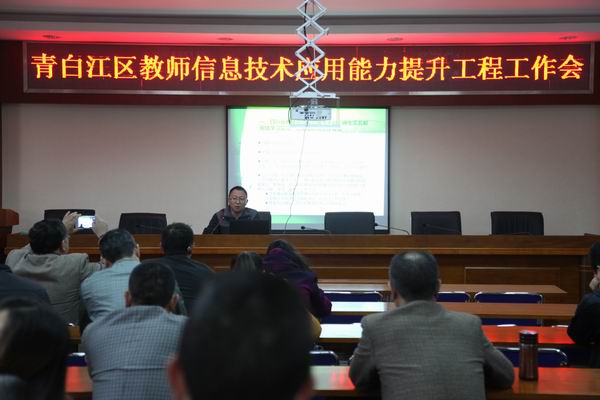 为顺利推进青白江区2015年教师信息技术应用能力提升工程各类培训工作,11月12日,青白江区教师信息技术应用能力提升工程执行办公室(以下简称区执行办)组织全区中小学、幼儿园、特教学校、工程职校的分管领导和校级管理员40余人,在老教育局二楼会议室召开了教师信息技术应用能力提升工程工作会。